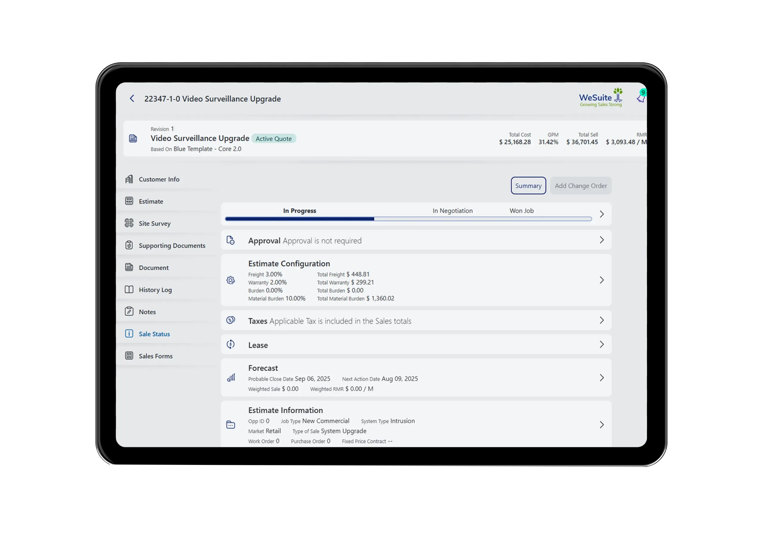 Forecasting, reporting, quoting accuracy and approvals – those things can’t happen without a solution like WeSuite. The return on investment begins immediately.